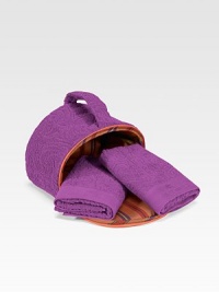 A thoughtful housewarming or hostess gift includes a pair of plush, paisley jacquard hand towels inside a matching, handled bag.