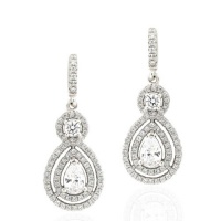 Ryssa925 Micropave Series - Sterling Silver & Sworovski Cubic Zirconia Teardrop Double Halo Earrings