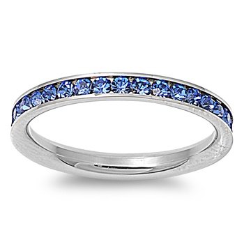Stainless Steel Eternity Blue Cz Wedding Band Ring 3mm (Size 3,4,5,6,7,8,9,10); Comes with Free Gift Box