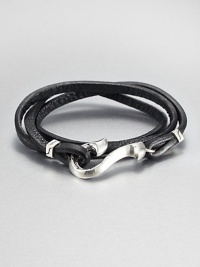 From the Dayak Collection. A strand of rich black leather wraps around the wrist, then closes with a bold sterling silver hook for a look of street-smart elegance.