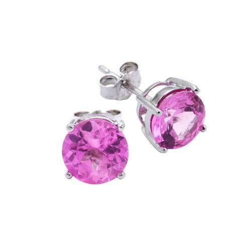 Stud Earrings Authentic Pink Sapphire Color Cubic Zirconia 2.00 Carats Total Weight Comes in a Gift Box & Special Pouch
