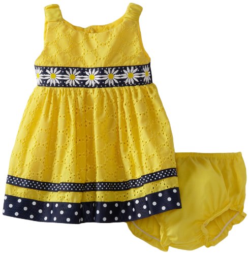 Sweet Heart Rose Baby-girls Infant Daisy Eyelet Dress, Yellow/Blue, 18 Months