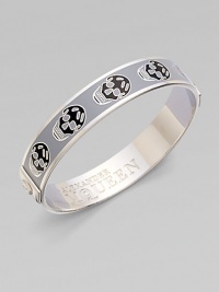Eerie skull-adorned enamel bangle in a simple, chic palette with ""Alexander McQueen"" logo engraving detail.