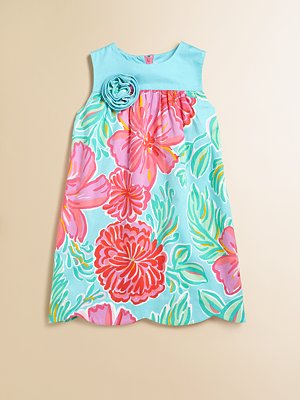 Big, bright blooms create a cheerful print in a sweet babydoll silhouette.