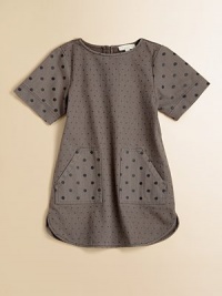 She'll be the star of the playground in a look-at-me dress that combines small and large polka-dots.