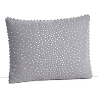 Embroidered knots scatter across a field of solid lilac twill, edged with looped trim.