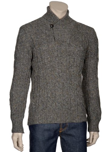 Vince Mens Rib-Knit Shawl Sweater Large L Suede Elbow Patches Gray