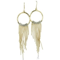 Vintage Inspired Rhinestone Circle Dangle Fashion Earrings With Fun Chain Dangles. 4 1/4 Inches Long
